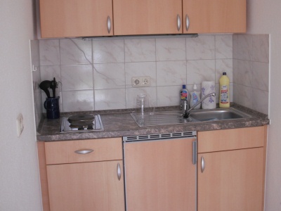 Diese 2011 gestaltete Ferienwohnung befindet sich im Parterre und ist über einen eigenen Eingang zu erreichen. Im Wohnzimmer ist Sat-TV und Radio, sowie Brettspiele für Kinder und Junggebliebene verfügbar. Die Miniküche ist mit einem 2-Platten E-Herd mit Abzugshaube, Kaffeemaschine und Toaster und Kühlschrank ausgestattet.